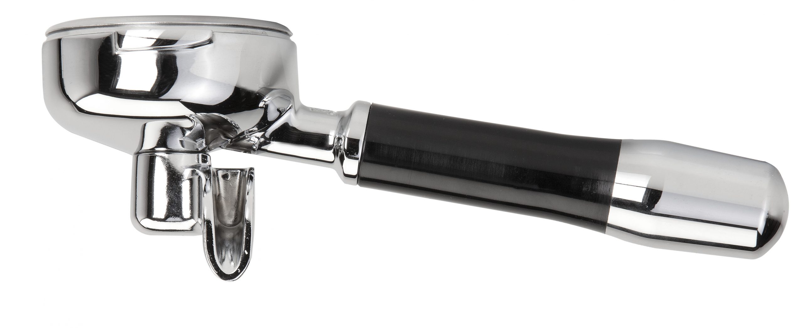 - High-quality chromed portafilter with one spout